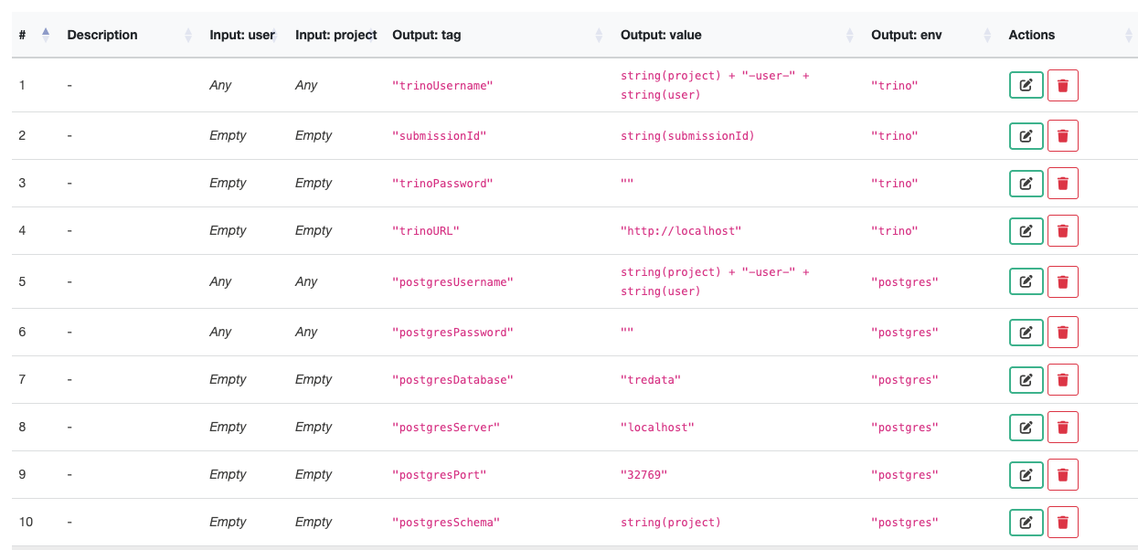 Login to the TRE Layer UI and navigate to the “DMN Rules” section. This page helps to set the values which are used by the Executor (e.g., Funnel) to connect to the TRE DB.